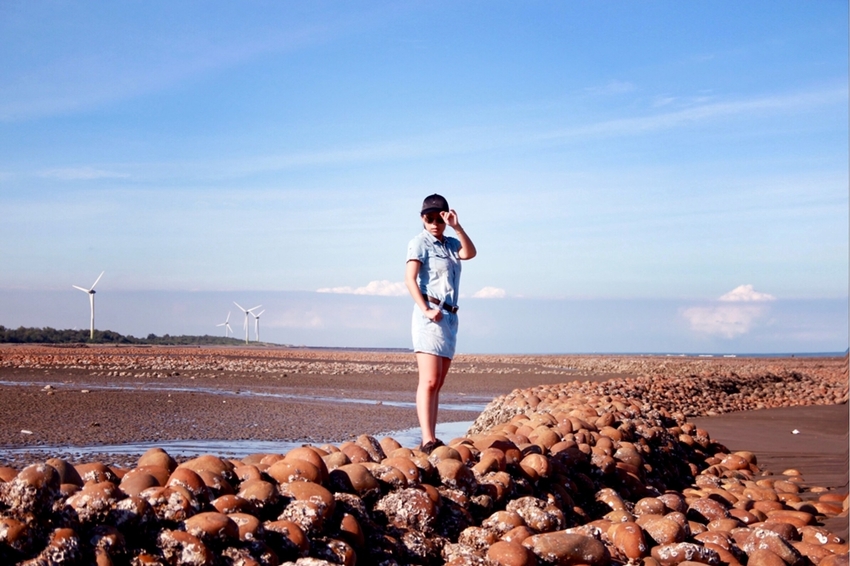 沙灘上的豬鼻子消波塊,怎麼拍都好看,還可在這欣賞日落美景。