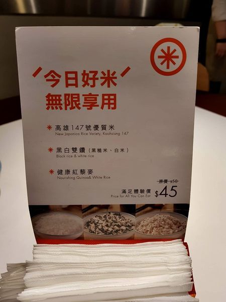 點套餐可以三種米選二種, 無限享用!