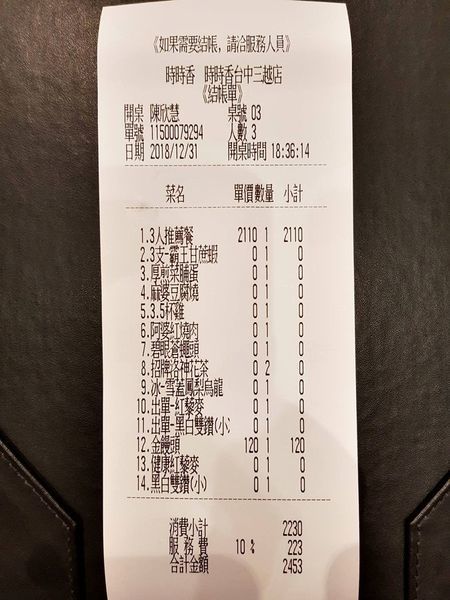 今天總共花了$2453 for 3 ppl, 1人平均 828 人