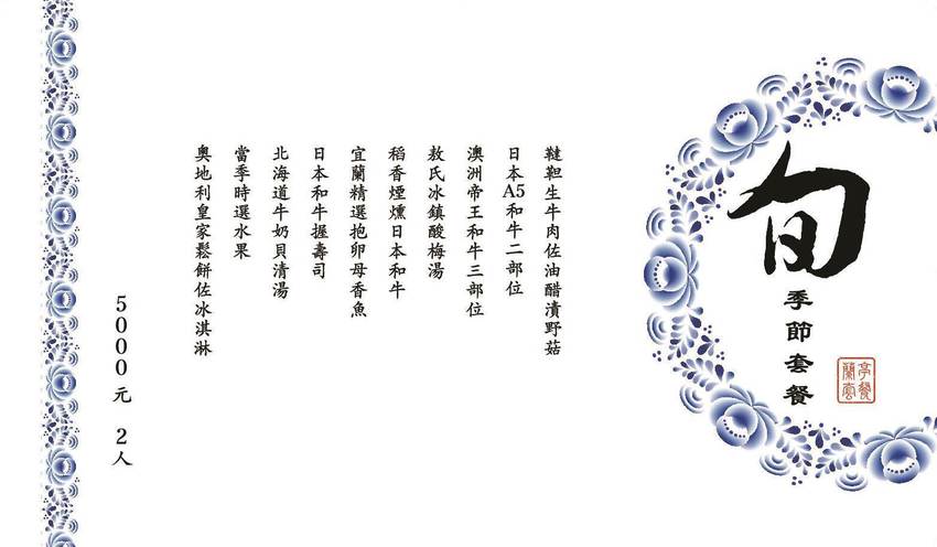 這天我們品嚐的是最新菜色,旬套餐會依季節變換,$5000/兩人套餐。