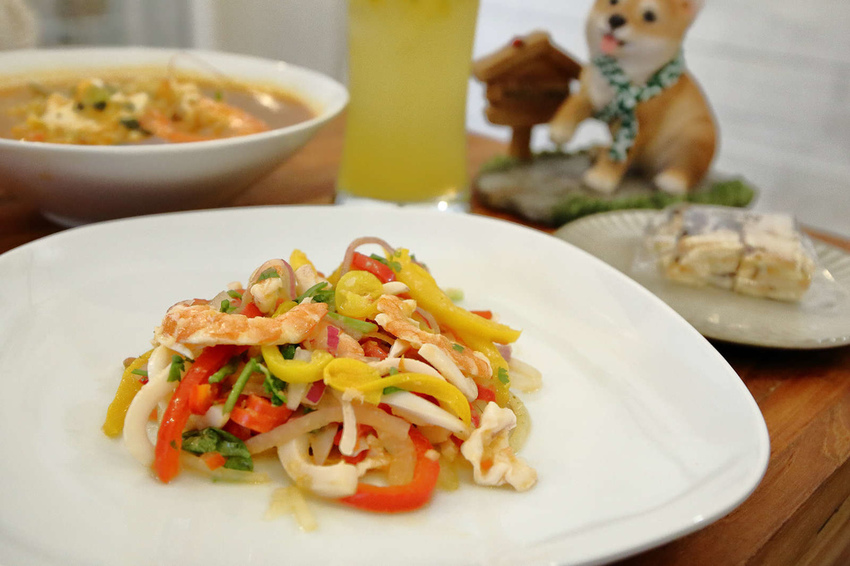 海鮮莎莎醬沙拉+韓式海鮮泡麵+百香果氣泡飲