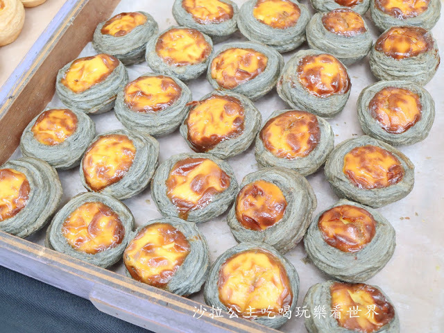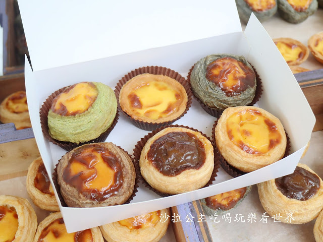 有竹炭芋頭、抹茶紅豆、巧克力、經典原味等多種風味蛋塔