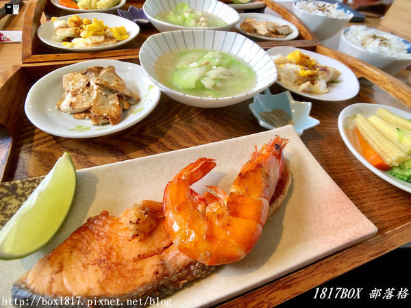 Audi和我點了二份餐點,這天我們點了日式鯖魚和鮮蝦鮭魚,配菜依店家當天提供為準,