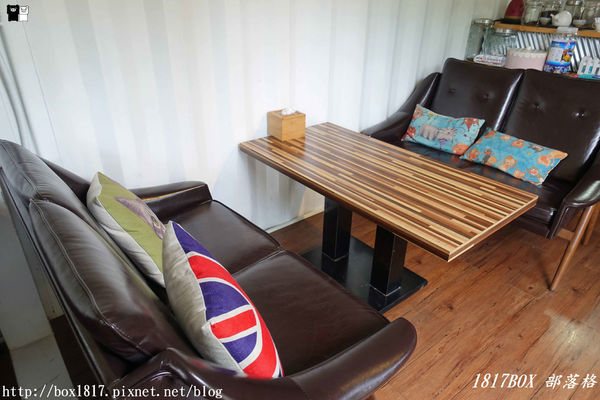 咖啡廳位於貨櫃屋內,裡面也走網美風,木桌搭配沙發或皮椅,