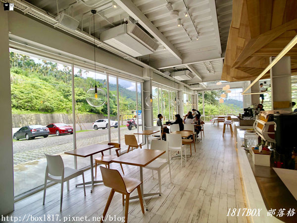 蠻荒咖啡外觀使用白色和木色系,在台21縣道上顯得相當醒目,
