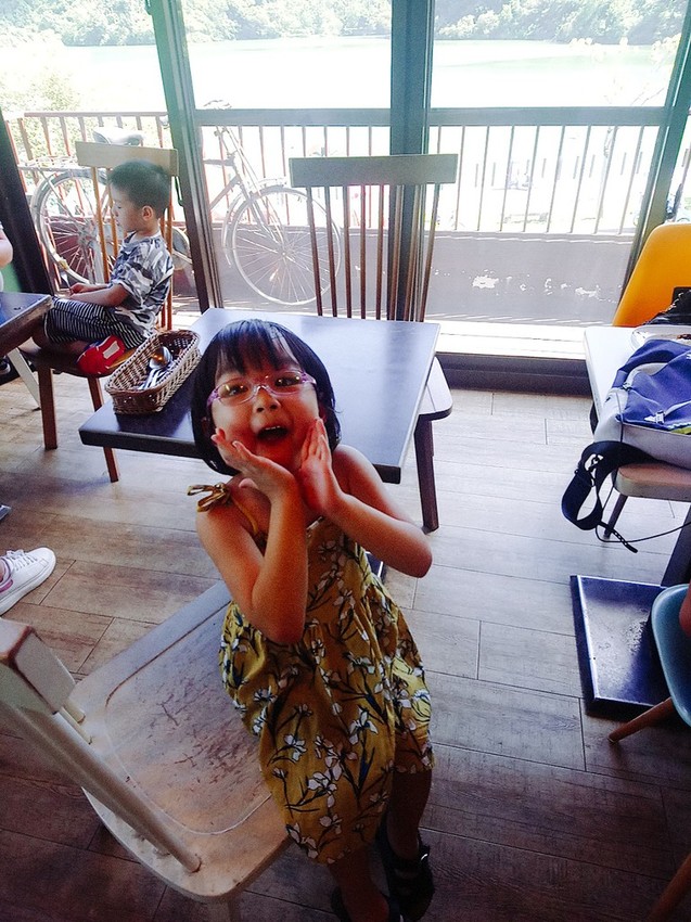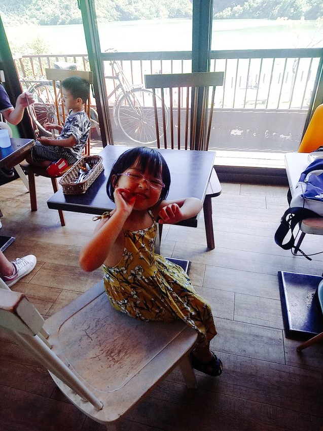 用不餓的心情等食物,可以欣賞外頭的梅花湖風光。