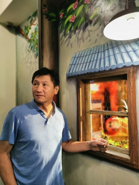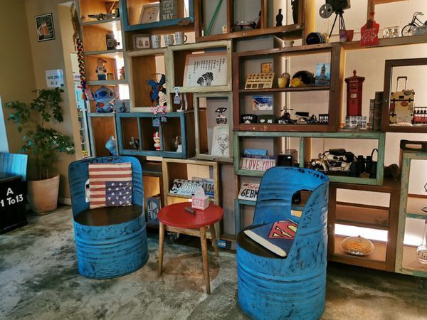 將環保材質如牆面上的輪胎成復古工業風的視覺衝擊。