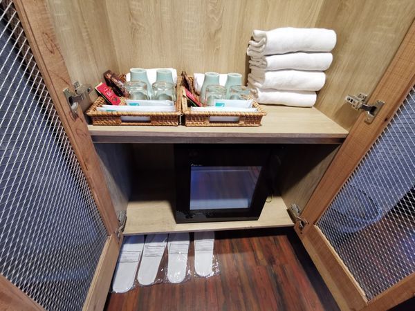 大多的毛巾備品及咖啡茶包都在衣櫥裡頭,而且也有提供小型的冰箱