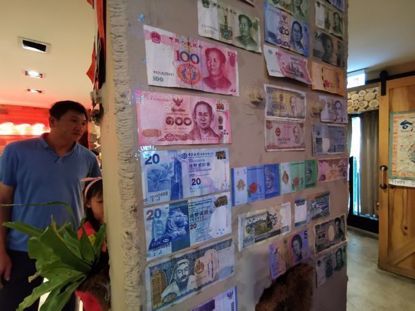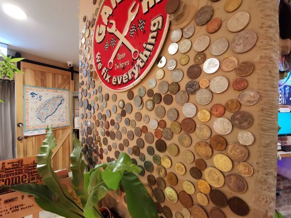 櫃檯旁的牆壁上居然貼滿了各國的錢幣,這真的是含金量相當高的牆壁啊