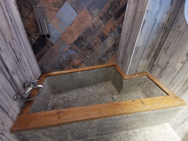 很誇張吧!!居然還有磨石子浴缸,而且看來還不小,我們母女倆應該可以同時在裡頭享受泡湯樂趣了吧