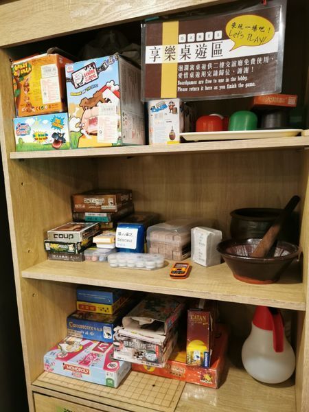 冰箱旁邊還有提供桌遊,遊玩之後可是要再放回原位喔