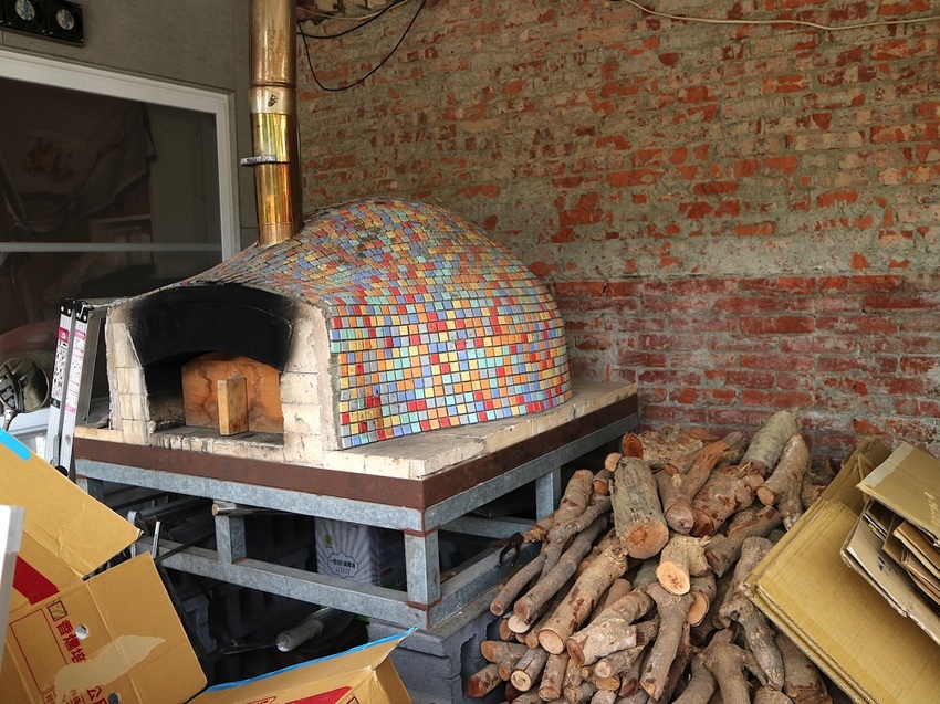 ▼庭園還可見一個 彩色磁磚面的披薩烤窯,店家說,之前真的都在外面烤披薩,瞧!!! 一旁還有成堆的木柴呢!!!