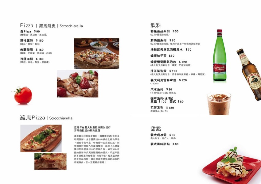 (取自店家說明資訊:) 羅馬披薩的餅皮是 近幾年 義大利最新流行的scrocchiarella ,使用老麵製作,2天低發酵,高溫烘烤後 Q而不軟、越嚼越香。