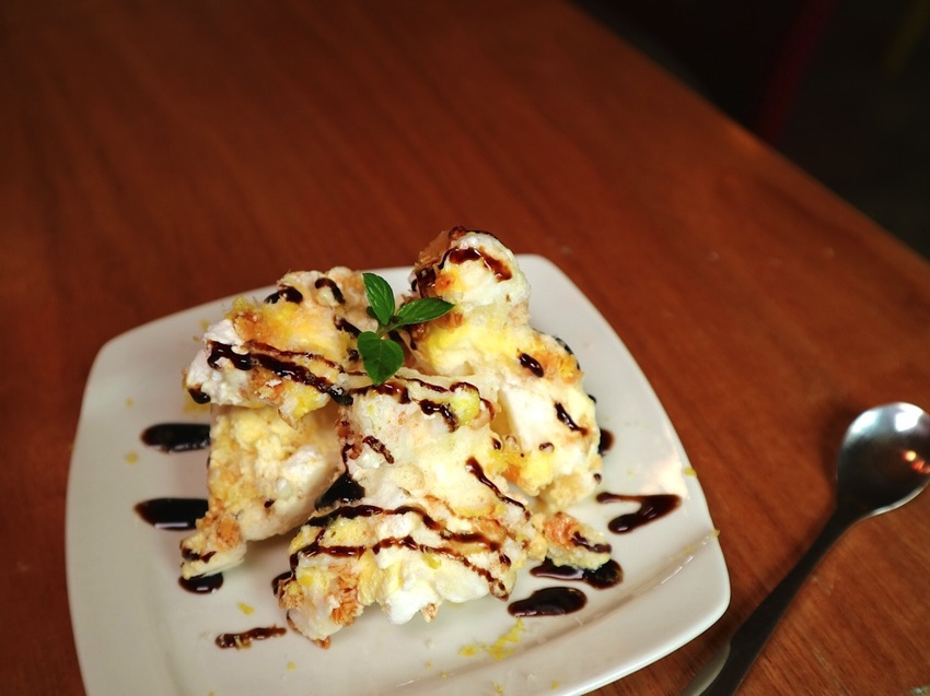類似一塊塊不規則的冰磚,一送上桌,店員就叫我們趕快吃,不然會融化喔!