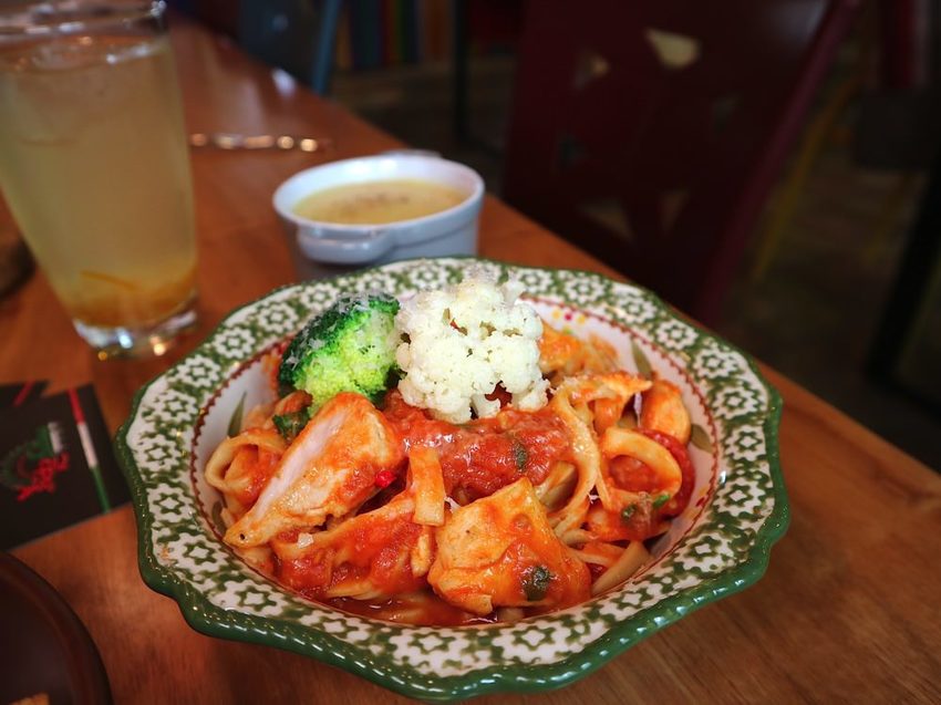 ▼《蒜香辣味雞肉義大利麵套餐 $258》