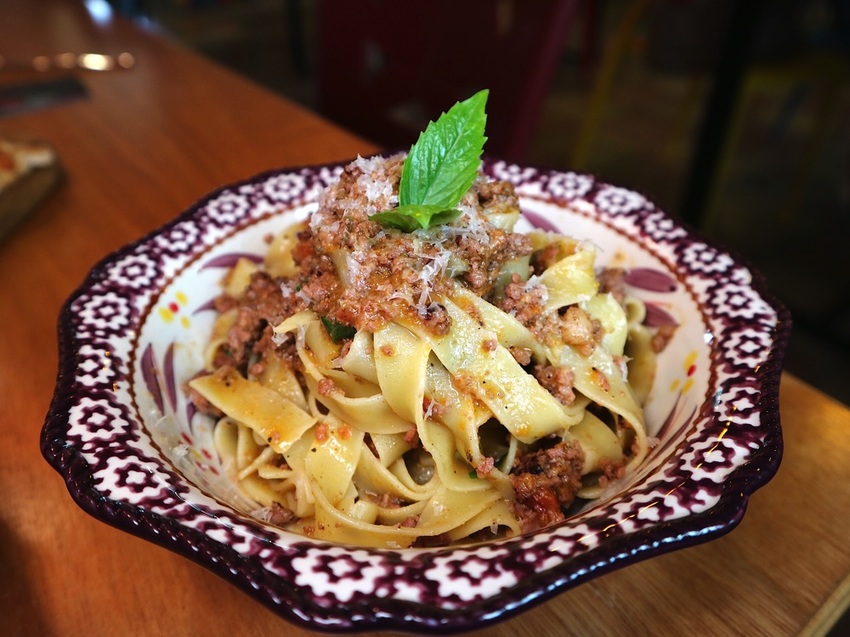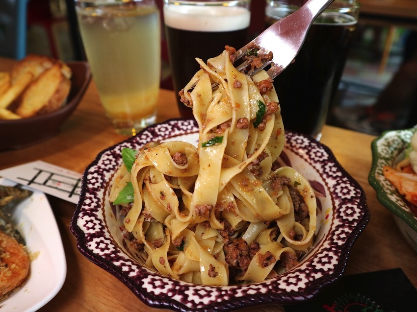 (取自店家說明資訊:)波隆那 肉醬,在義大利 當地也有許多廚師 製作;有別市面上加紅醬的肉醬麵,強調的是肉香味,只加少許的義大利蕃茄 熬煮肉醬。