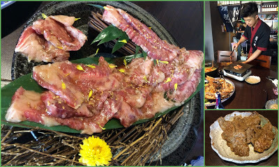 當餐廳的工作人員來桌邊服務時,牛肉在石板上吱吱作響,泛著油花,