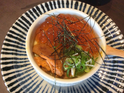 濃郁的高湯滋潤著滑嫩軟綿的玉子,海膽甜美,鮭魚卵