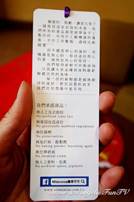 It even comes with the gift bag. Very thoughtful! 小小的掉卡,正面寫著「越吃越瘦」,另外一面寫著蜜思可可Misscocoa對他們手工餅乾品質的堅持。