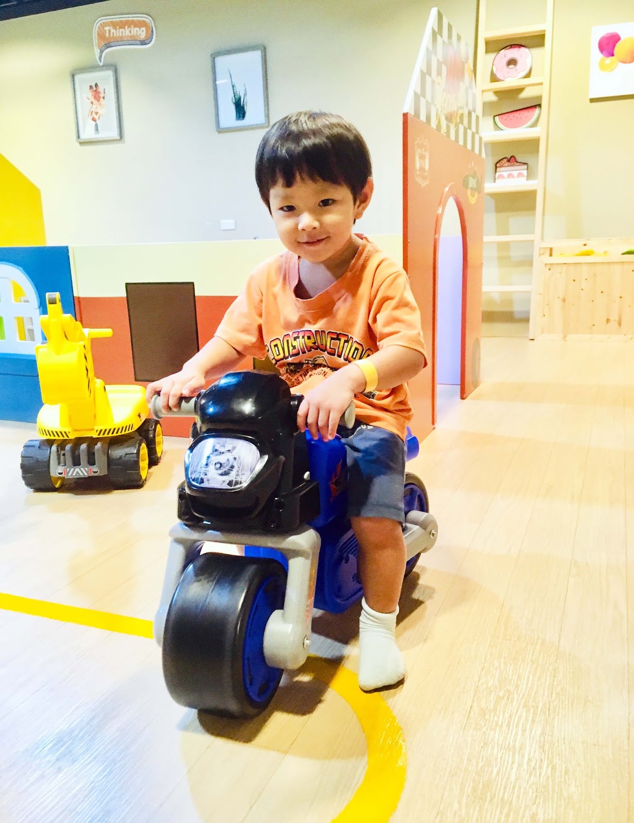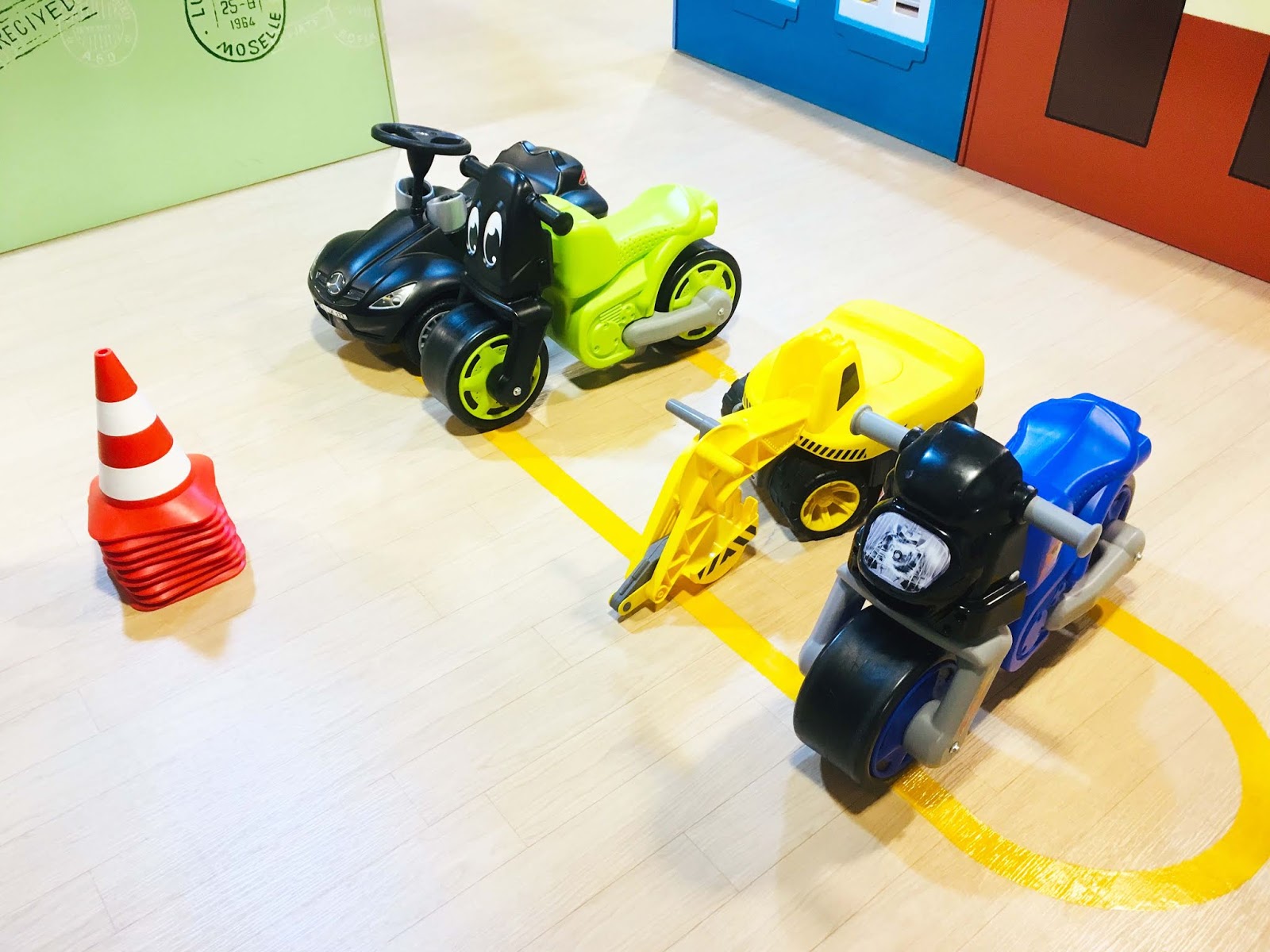 「模擬車道」有多種嚕嚕車和摩托車,全園區都是孩子追風的賽道,在園內遊玩不時會看到孩子開車從身旁帥氣地行駛而過。騎乘遊具需要身體協調和平衡感才能穩定地持續前進,由於孩子是穿著襪子騎乘,大人要隨時留意孩子以避免不小心滑倒喔!