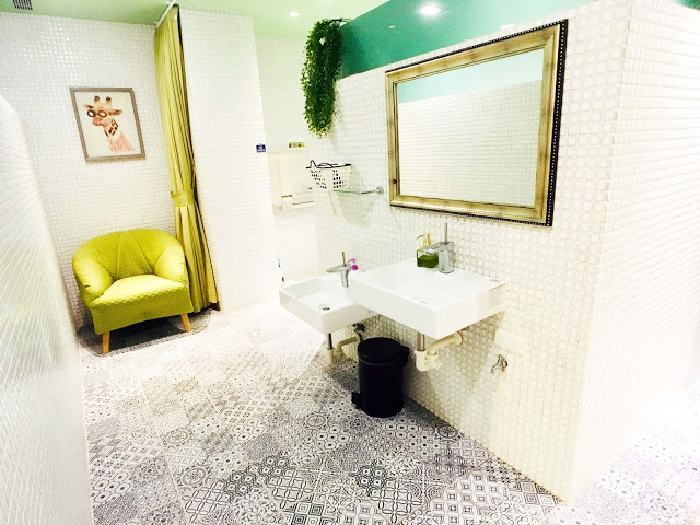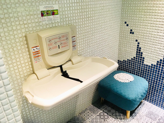 洗手間內有哺乳室、尿布台、親子廁所,空間很乾淨整潔,高雅的裝潢像是百貨公司裡的育嬰空間。