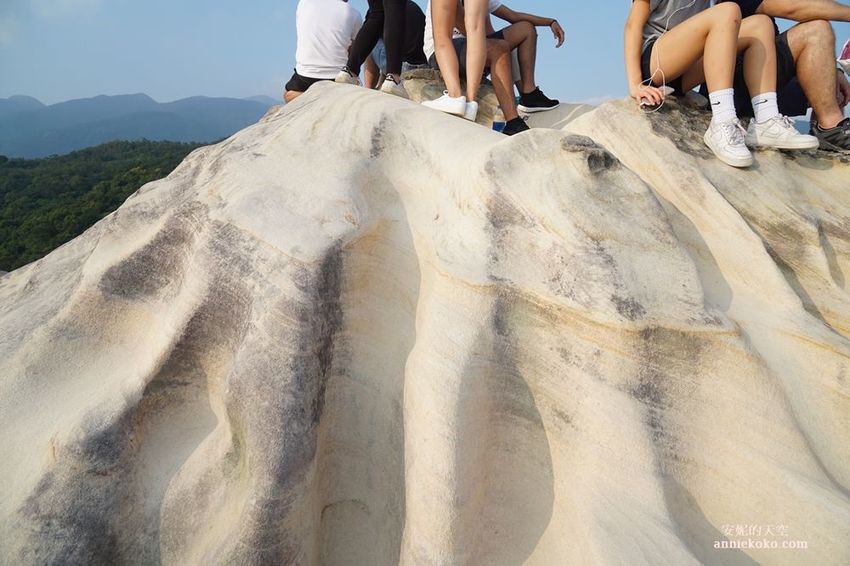 軍艦岩的頂端有著45度的斜坡,看起來略微陡峭,但坐在上面真的無敵舒服。