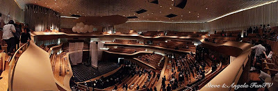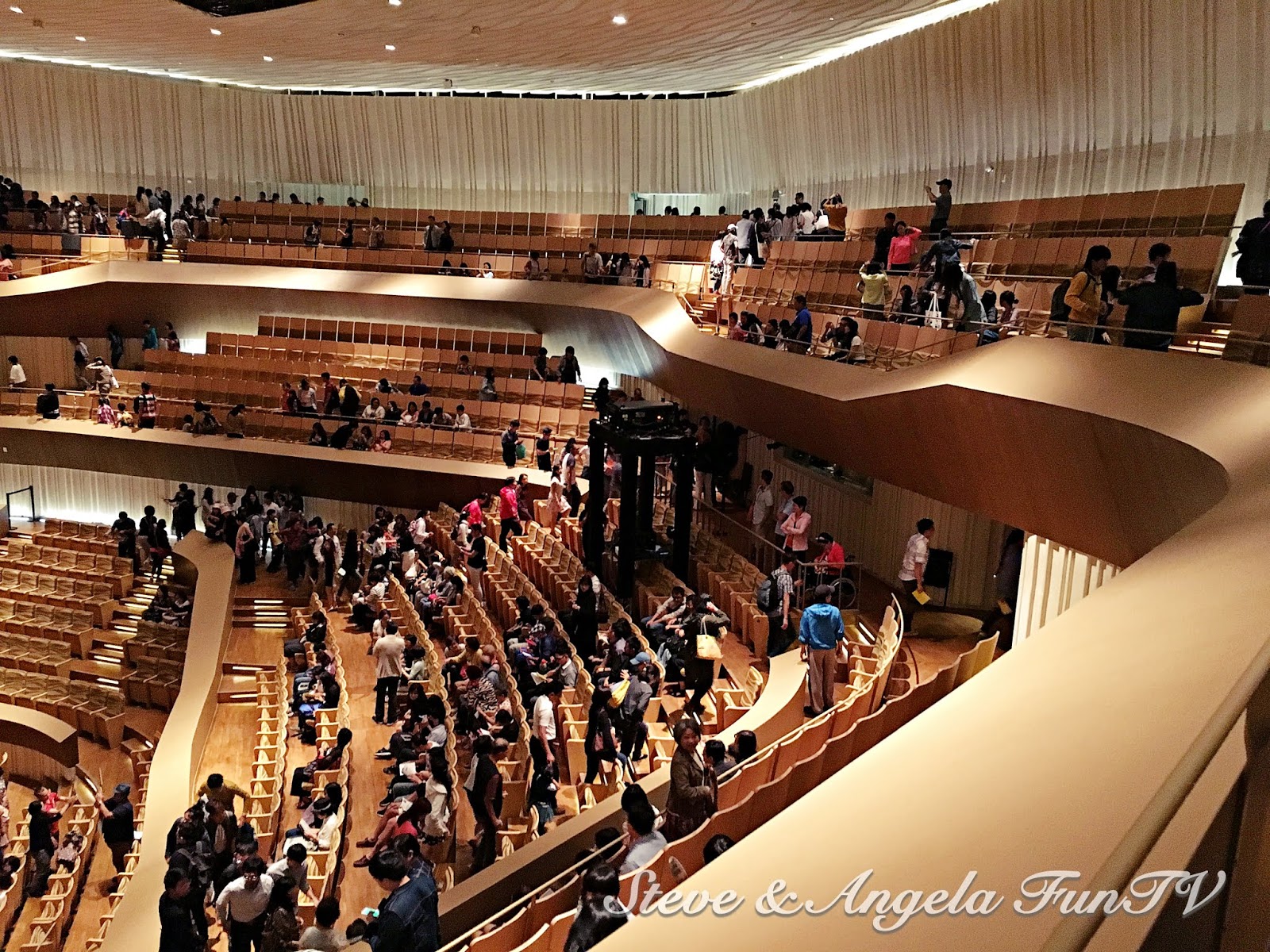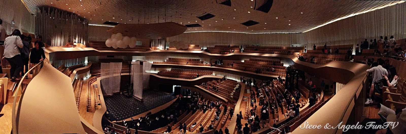 當初早鳥票,我們買了便宜的位置,上來的時候,要搭電梯到3樓,我還很擔心,那是不是會離舞台很遠、看不到,但是音樂廳採用交錯的方式,以舞台為中心,有點像是花瓣的感覺,即使在3樓,視野還真的不錯。I love the agricultural design, it's so chic and sleek. You can not see any stairs. Even though the incline ramp is kind of hard to walk in my 5.5 inch heels, but it's definitely quite easy access for wide range of people, including people in wheelchairs.