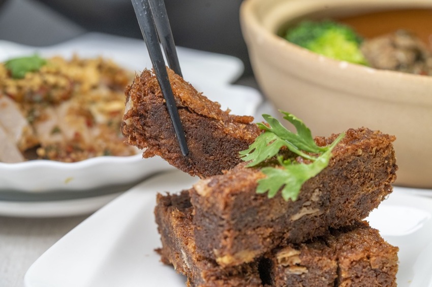 最最令人驚豔的就是這道小菜,看到菜名「菜脯蛋捲」可能會聯想成一般的菜脯蛋捲起來的樣子,但這道蛋捲是炸得非常酥脆的菜脯蛋酥做成的,有別於一般的鹹食,吃起來就像肉鬆一樣,是一道非常有創意又美味的小菜,果然跟它的名字一樣,吃了會讓人飛上天!