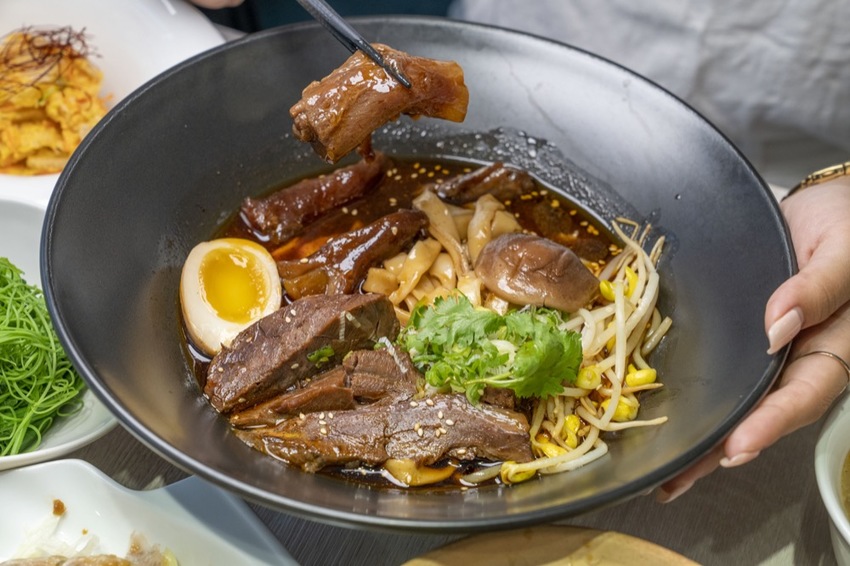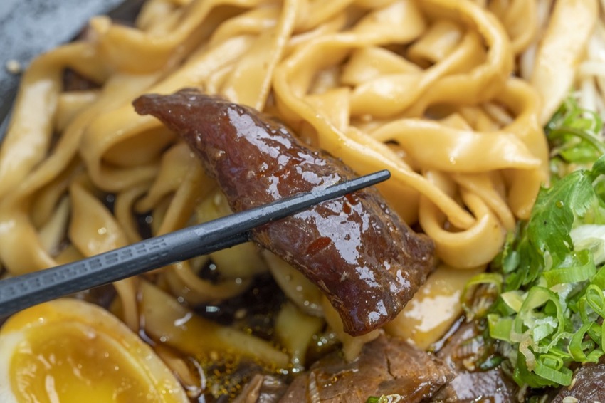 麵條的部分可以看個人喜好選擇寬麵或細麵,這次我們選寬麵,Q彈的麵條外層吸附著一層湯汁,每一口都讓你吃得非常滿足!