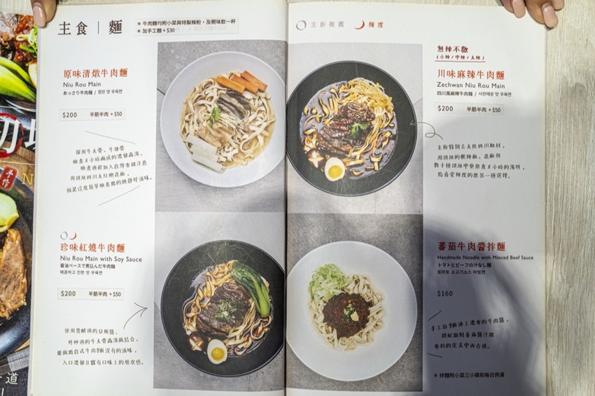 店內共有四款牛肉麵可以選擇,分別有「原味清燉牛肉麵」、「珍味紅燒牛肉麵」、「川味麻辣牛肉麵」以及「番茄牛肉醬拌麵」,以在中山站美食戰區來說,價格已經算親民的了!