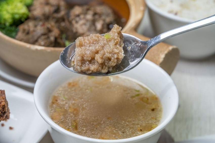 另外套餐裡還有附贈一碗湯,每日例湯不定期會更換,今天是「排骨酥湯」湯頭鮮甜,排骨也不小塊,獅子頭套餐可以吃到三道小菜和一碗湯,算下來其實超划算的啊!