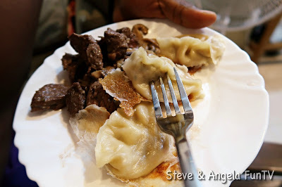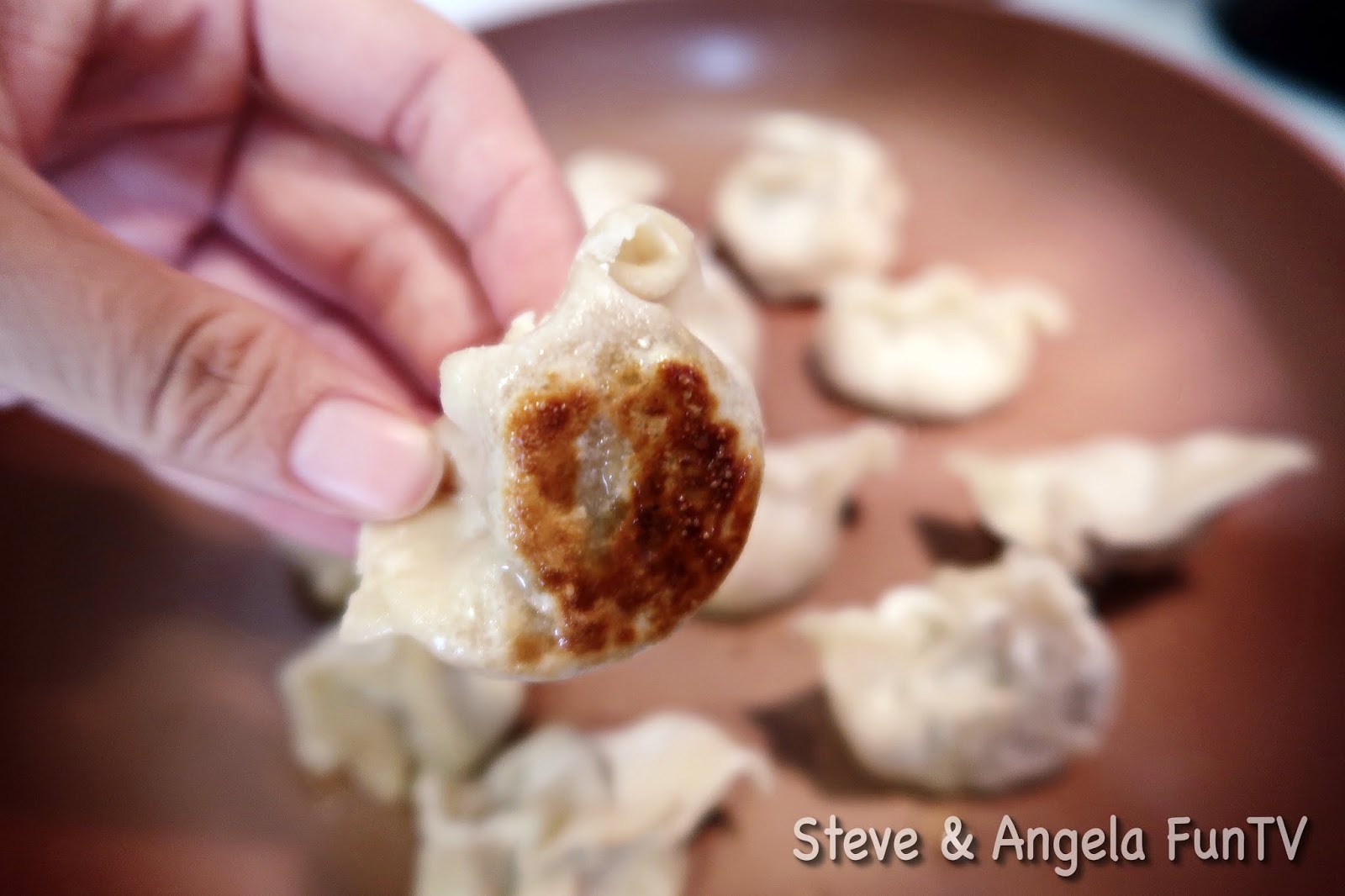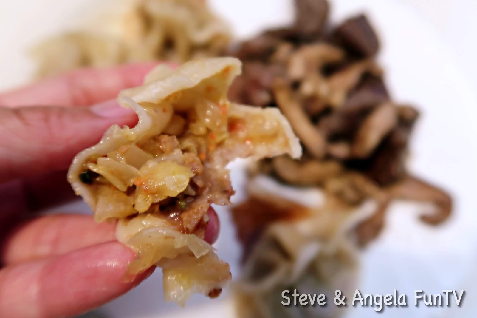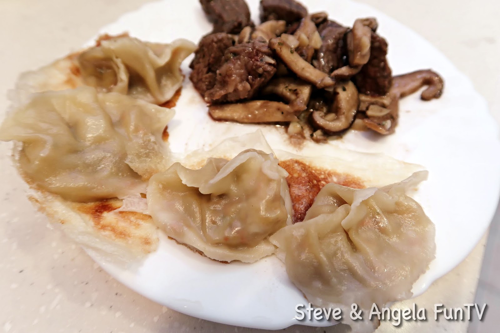 I pair the pan fried vegetarian dumplings with some sauté mushrooms and steak. It's the perfect combo. 可能是因為是素食的餃子,沒有肉產生的油汁,所以煮出來看起來比較沒有那麼飽滿。