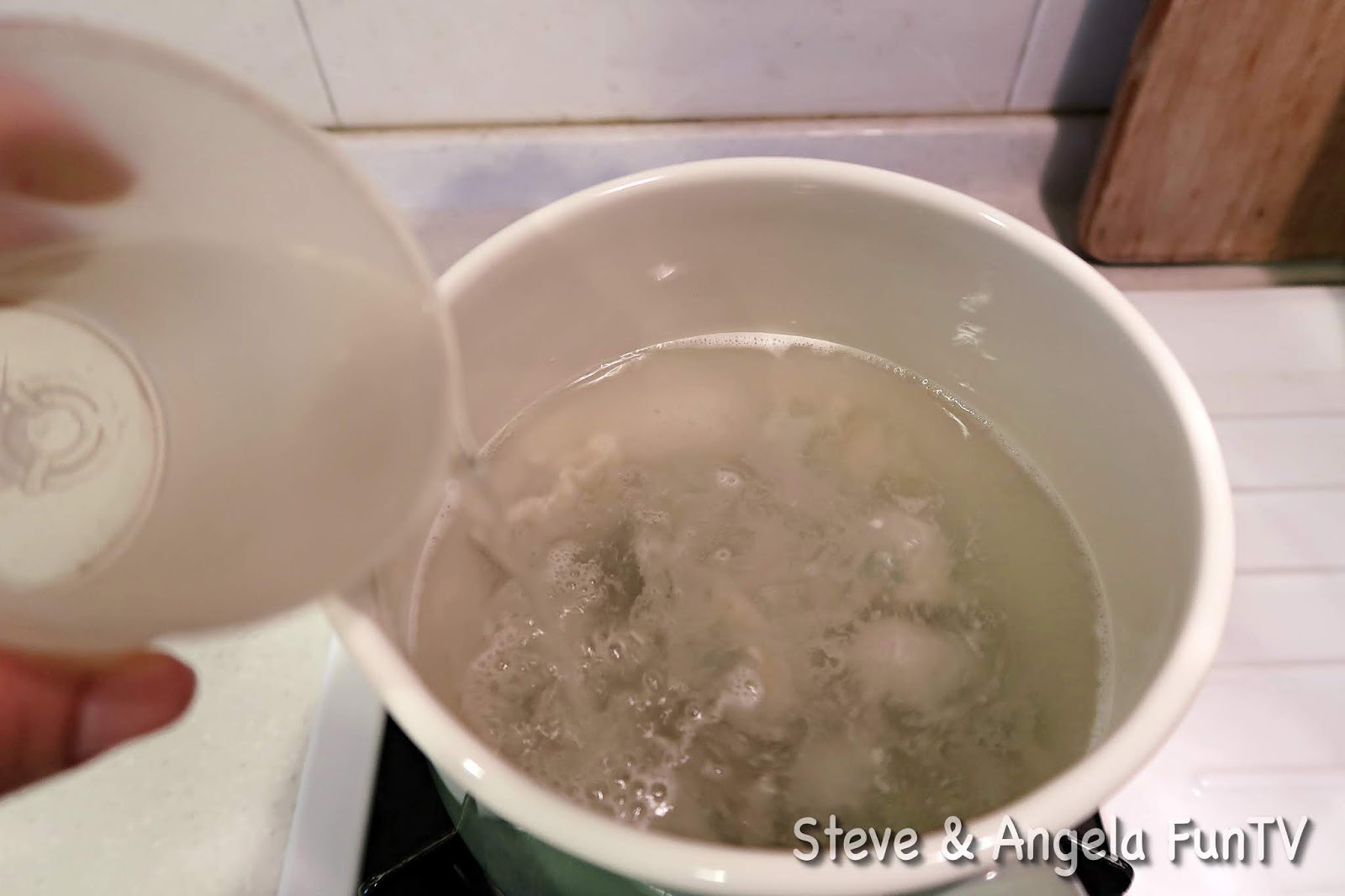 4. 第二次水滾後,一樣倒入半杯的涼水。