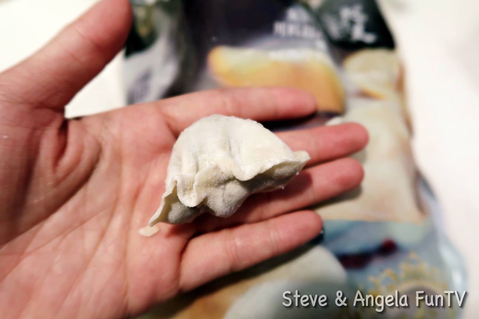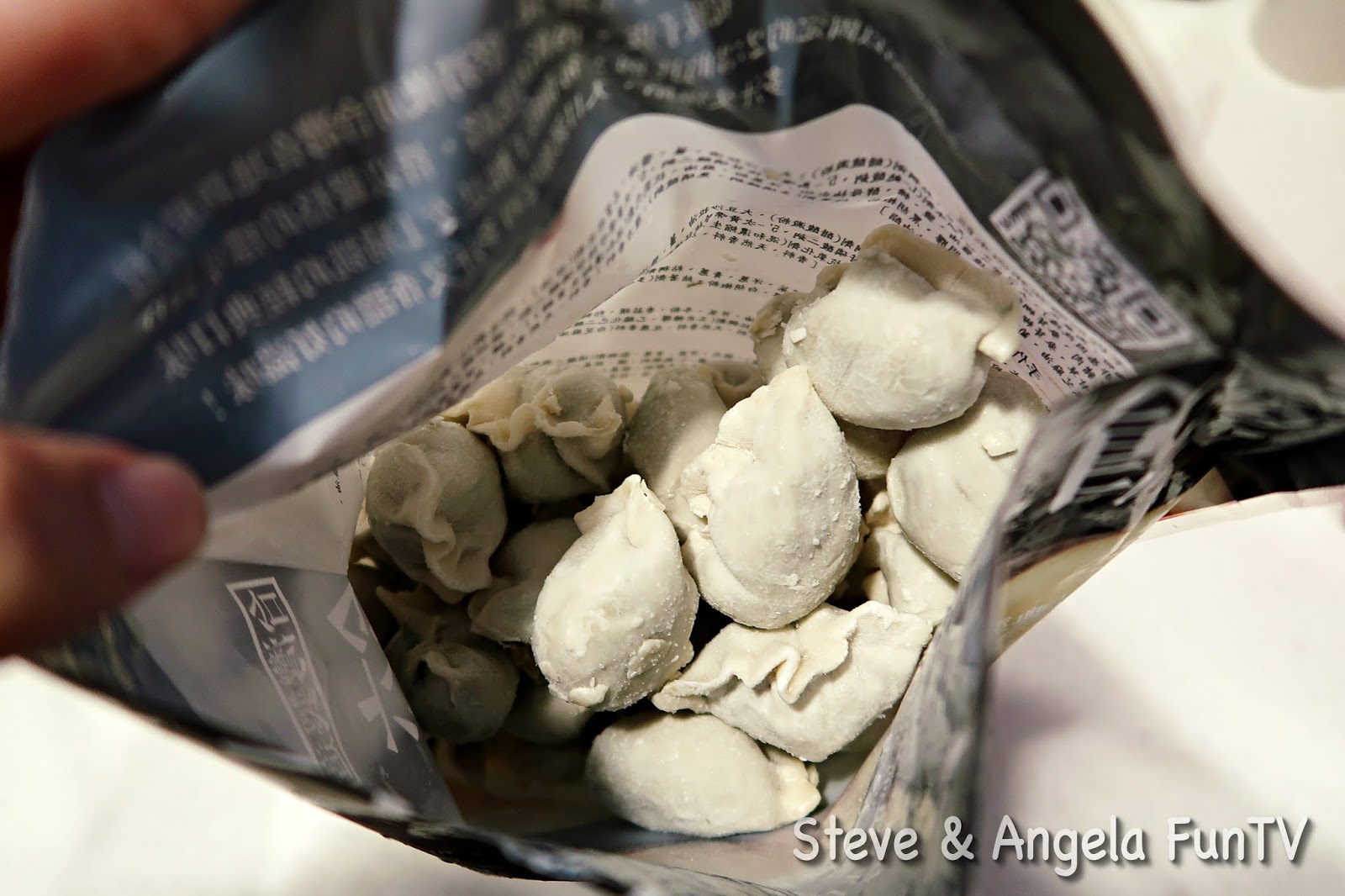 It's kinda hard to tell the flavor from the bag until I noticed the check mark. Since Queen Yu Homemade Dumplings uses the same bag for all flavors, you have to look closely on the check mark to find out the flavors.一打開袋子,一看水餃就知道是手工製作,雖然每一個都包的渾圓飽滿,但是每一個都長得不一樣,有別於一般機器水餃,可以看得到手工的皺摺!