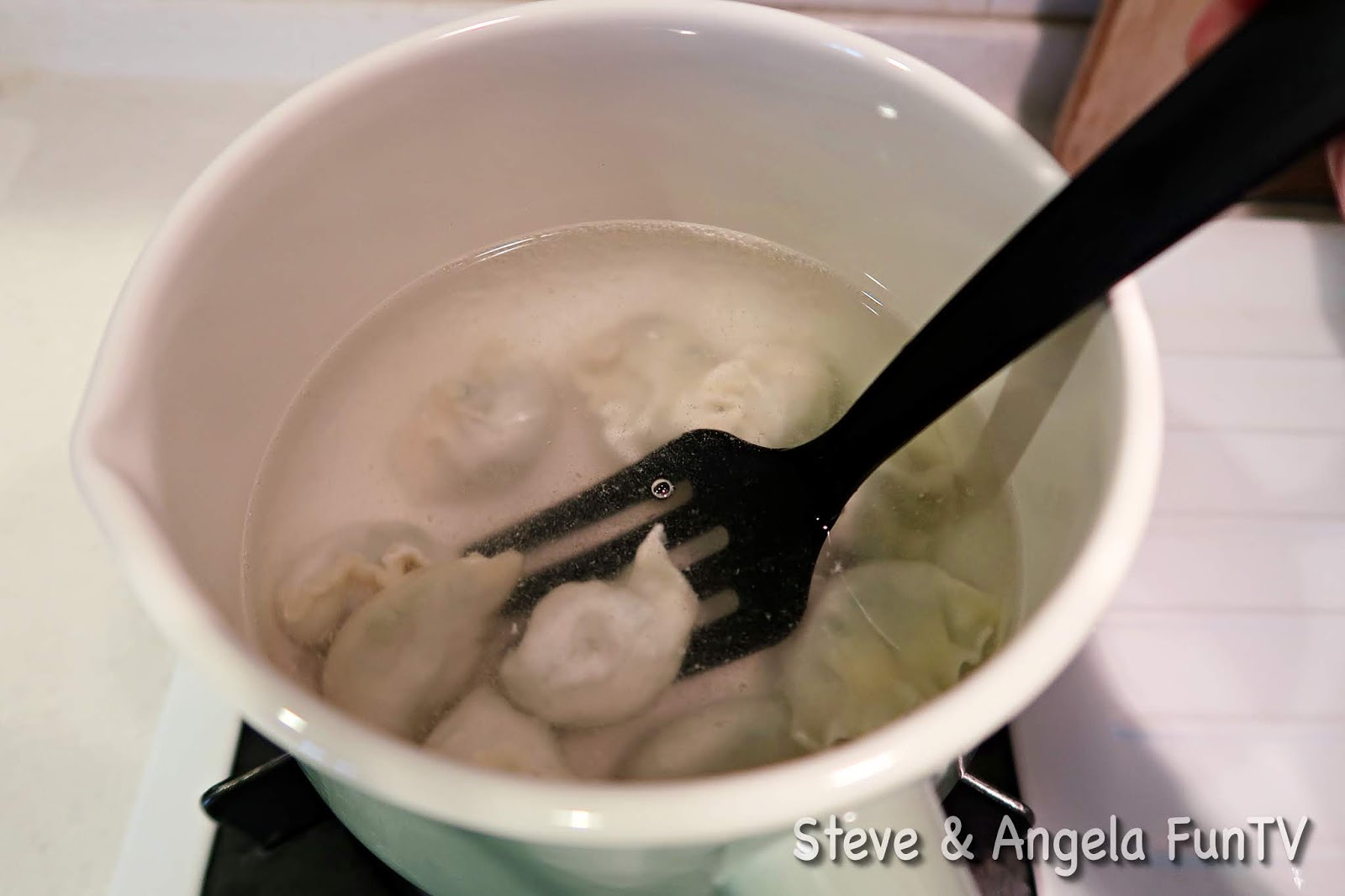 2. 水餃一放進去,需要趕快攪拌一下,避免水餃黏在鍋底。