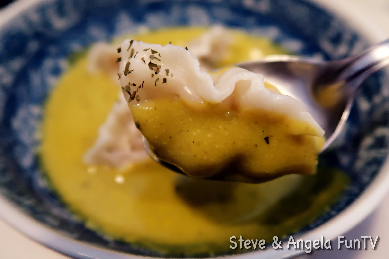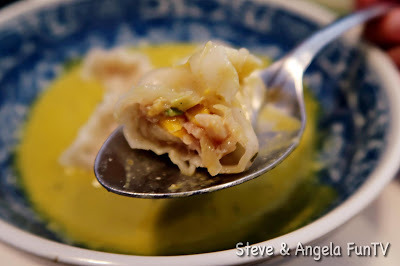 This is a no cream soup, and I didn't use any thickening at all. Check out the consistency. It's so good to have a nice bowl of warm soup in the fall days.「鈺女王-女王的手工水餃」玉米水餃配上濃湯,玉米濃湯的變化版,只是玉米跑到水餃裡面了!哈哈~
