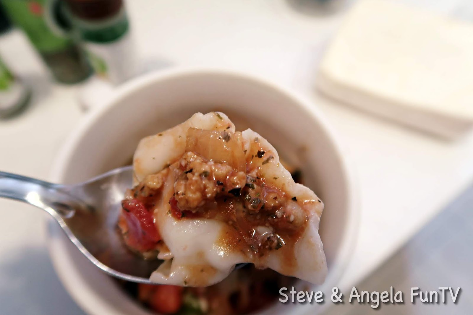 Here is my deconstructed lasagna! The spices here play a big role to transform into a Italian dish.番茄蔬菜肉醬配上高麗菜豬肉水餃真的好好吃,蔬菜不知不覺就被吃下肚了,是一個騙小孩吃蔬菜的好方法!和其他口味比較起來,可能是因為其他的口味比較有特色,高麗菜水餃就比較普通。
