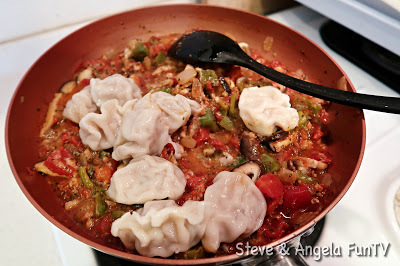 The marinara sauce goes great with Queen Yu Cabbage Dumpling. A small effort to incorporate many vegetable in one meal. The cabbage flavor is good but not special to us compared with other flavors. 「鈺女王-女王的手工水餃」的面皮比較厚,所以真的很耐煮,像這種需要兩次烹煮的過程(雖然第二次只是快速拌炒一下),水餃面皮一樣保持Q度,從頭到尾保持圓滾飽滿的元寶狀,Steve果然很捧場,對冷凍水餃完全改觀,現在問他要不要吃水餃,他都說OK!
