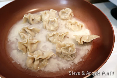 2. You want to quickly stir the dumplings once they are in the water, or it might start sticking to the bottom of the pot.3. 第一次水滾後,倒入半杯的涼水,需要繼續偶爾攪拌。