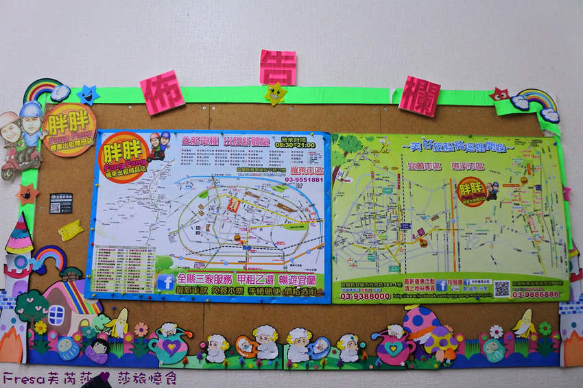 佈告欄上有關羅東周邊旅遊景點.