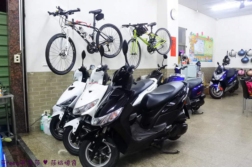 小小的店面.現場也有提供機車可選.