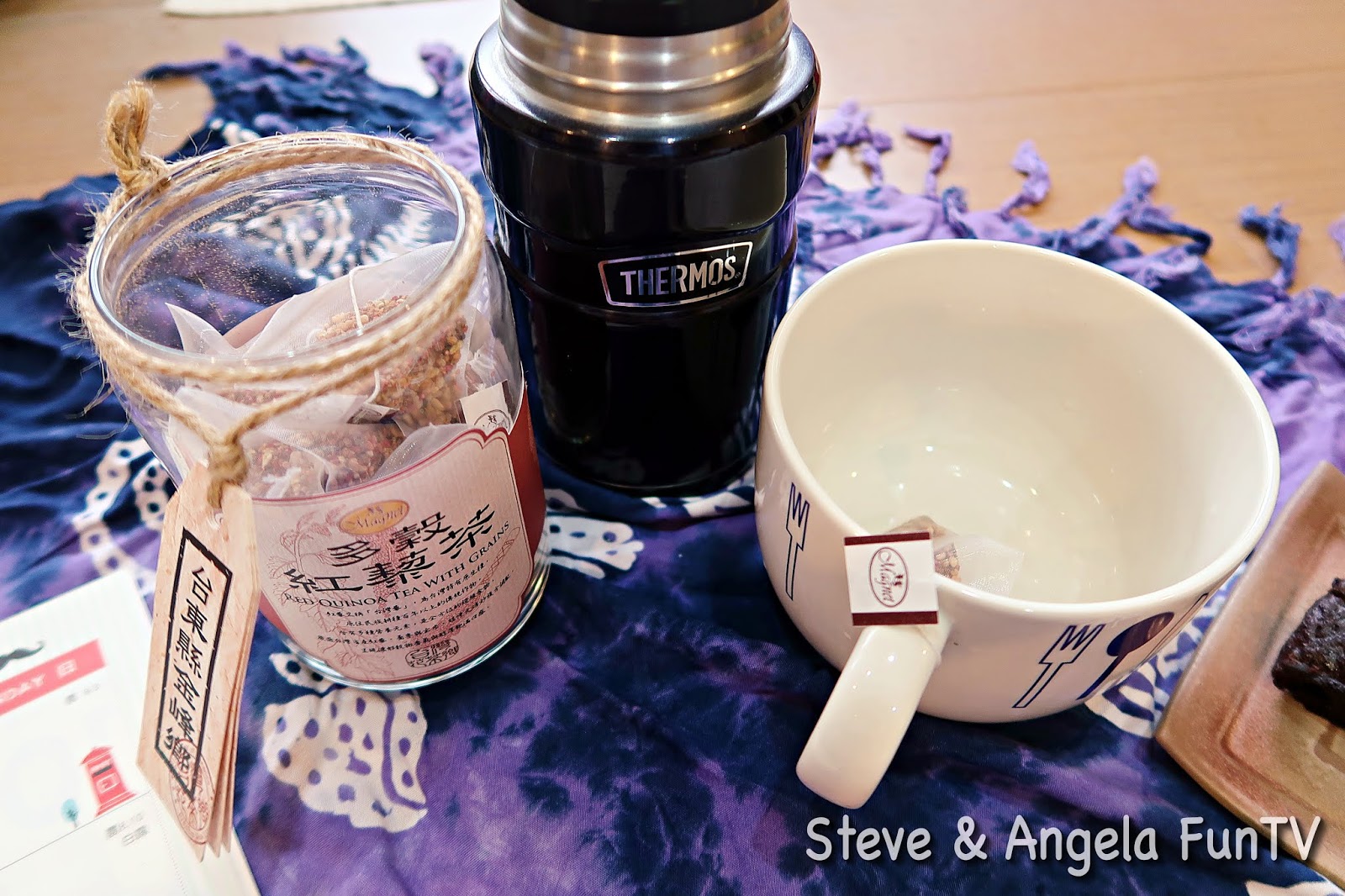 The Red Quinoa Tea is filled with all different types and colors of grains. The grains smell lightly toasted.都跑到戶外了,這次下午茶走輕便簡單就是幸福風,一個人喝茶,我最喜歡這種大大寬寬的、像碗公一樣的馬克杯。一樣把茶包簡單纏繞在馬克杯手把上,就可以開始泡茶咯!