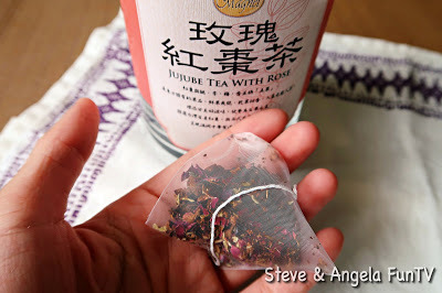 The three-dimensional tea bag is such an unique design.玫瑰紅棗茶:
