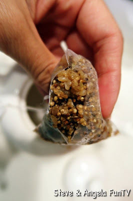 Once the tea bag is done. All the grains have been expended and filled up the entire tea bag. It's quite interesting to see all the grains are cooked and actually tasted like regular rice!!! So cool!