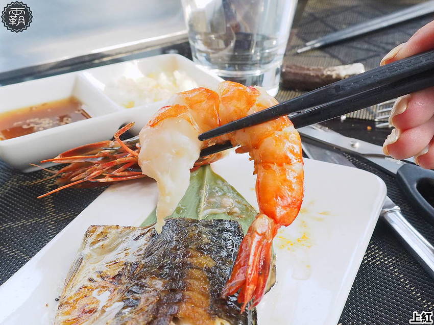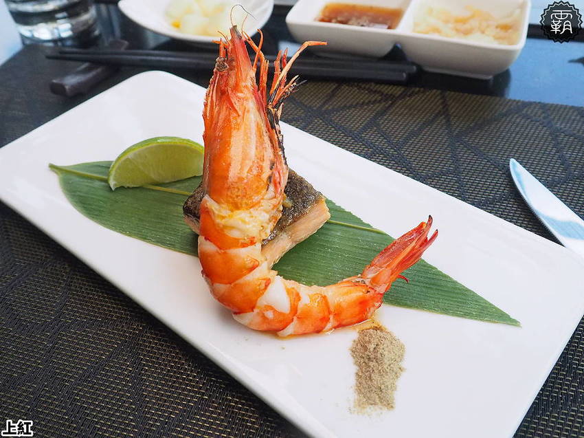 同時季節鮮魚還會搭配一尾野生海老大蝦,火焰直接在蝦上炙烤的香氣十分迷人。