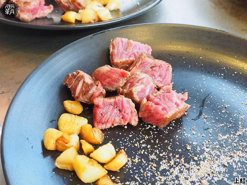 牛排還會搭配胡椒鹽跟炒過的大蒜,精選的老饕部位果然很厲害,肉質相當的軟嫩,咀嚼時不僅能吃到牛肉肉甜,大蒜的香氣更能襯托牛肉的肉香。