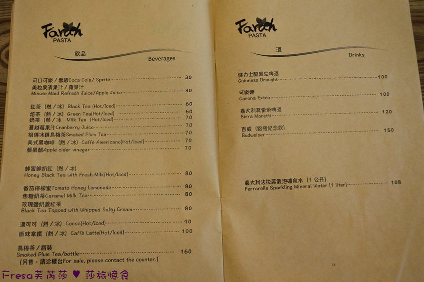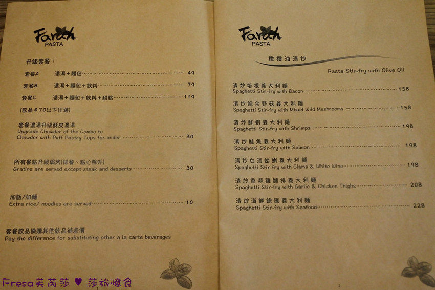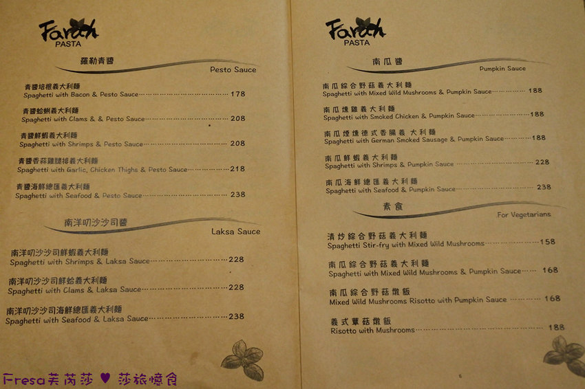 【法拉義式廚房Farah Pasta】菜單.