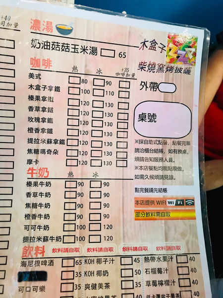 木盒子咖啡室內室外座位都有,可以自行選擇喜歡的座位,再到吧台點餐,這裡不收服務費,飲料最便宜20元就有,是不是非常親民