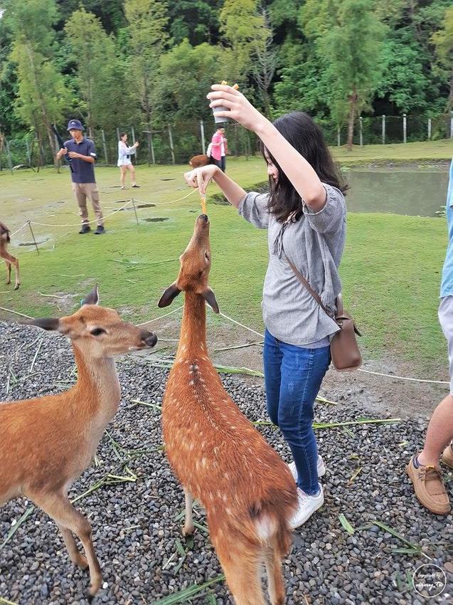 一張門票可以兌換一份飼料要記得收好,不要像我們一樣飼料兌換券那邊被梅花鹿咬掉了一角覺得有點好笑又有點對不起梅花鹿讓你們吃到紙類了。(我們其實有收好只是要去對話飼料拿出來時剛好被梅花鹿看見了)