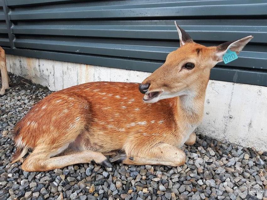 我們遇到的第一隻梅花鹿編號020,一直都在角落坐著應該是累了哈哈哈哈哈。